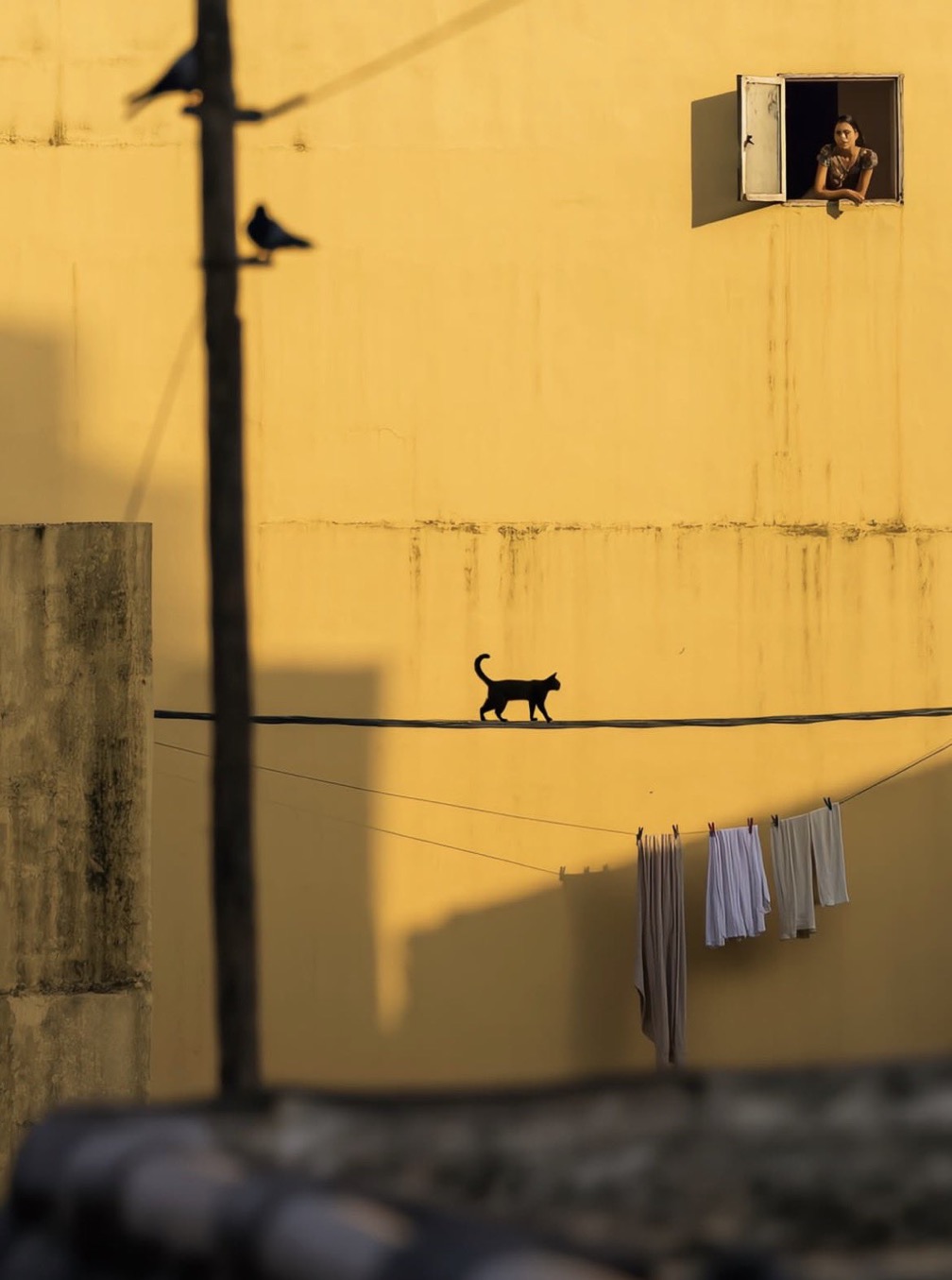 He was an old man. He was alone. He was halfway down a flight of stairs, caught between the sky and the earth, belonging to neither.
